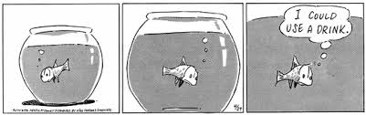 In 2023 the Blue-eyed Bear applauded the release and rescue of Guard Dog a Mutts comic strip character (see Mutts.com). Patrick McDonald the creator of Mutts broke the chain that had been holding Guard Dog in place for over 30 years and used the event to great affect to promote the release and rescue of all chained dogs. Patrick also release another of his characters in 2023, Sid the Fish, to much less fan fare. Sid lived in a plain bowl in Millie and Frank’s house and often interacted with Mooch their cat; all are Mutts characters. The BE Bear’s check of the Mutts.com online archive suggests that Sid first appeared in the Mutts comic strip in 1995; so Sid has been in captivity almost as long as Guard Dog had been chained. To Patrick’s credit and Mutts stated purpose “to promote animal welfare everywhere” he illustrated the drudgery of Sid’s captive life as an example of little cruelties when maybe humans think they are helping. Below is a Mutts strip showing Sid in his bowl from April 27, 1996. In his 1995 appearance in a Mutts strip, Sid laments that there is a God as Frank feeds him for the first time.