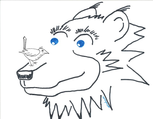 The wren is a feisty gleaner eating insects of various kinds. The Bear thinks its great to have its little friend see what it can find on the Bear body…YUM!