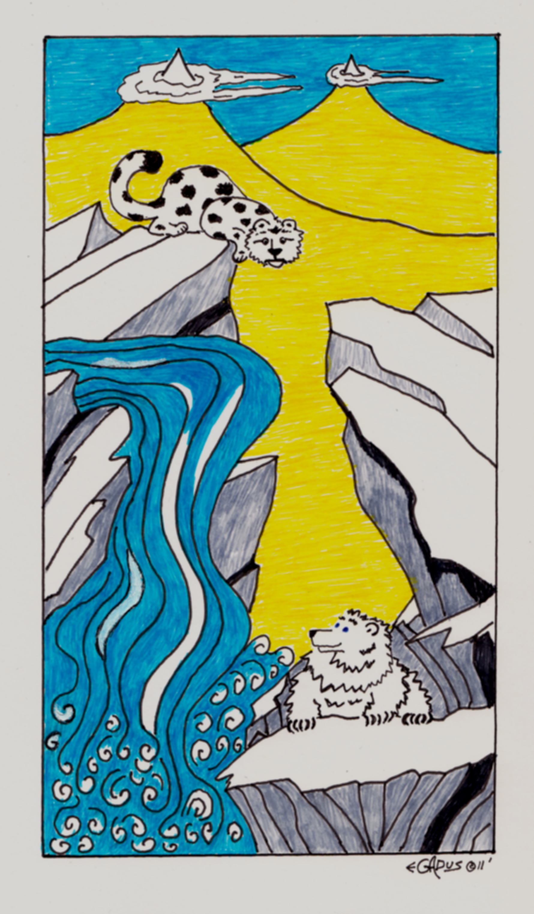 Always on the looking for a new place to call home the Blue-eyed Bear is in an extremely remote corner or the earth, the high Himalaya. This beautiful and extreme country may be remote enough and safe enough from human encroachment. But, can the B.E. Bear make friends with the mysterious “ghost cat”, the Snow Leopard, the top predator in this land.