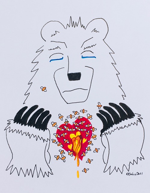 Last Night While I Was Sleeping. A Poem by Antonio Machado (translated by Willis Barnstone and Coleman Barks). Illustrated by the Blue-eyed Bear as perspective on her spiritual journey.
